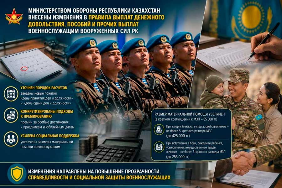 Қазақстан Республикасының Қорғаныс министрлігі Қарулы күштердің әскери қызметшілеріне ақшалай үлес, жәрдемақылар және өзге де төлемдерді […]