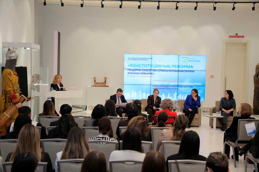 ««Бүгінде еліміз ауқымды конституциялық реформаның табалдырығында тұр. Оның маңызды кезеңдерінің бірі – ағымдағы жылдың 15 наурызына белгіленген республикалық референдум. Мемлекет басшысы 10 ақпанда өткен Үкіметтің кеңейтілген отырысында сөйлеген сөзінде: «Ұсынылып отырған өзгерістер мемлекетіміздің конституциялық негіздерін түбегейлі қайта жаңғырту қажеттігін күн тәртібіне қояды. Негізінен, сөз мемлекеттік басқарудың жаңа жүйесін құру туралы болып отыр», – деп атап өтті. Еліміздің жаңа Негізгі заңы жобасы аясында қарастырылып отырған маңызды мәселелердің бірі – гендерлік және отбасылық-демографиялық саясат. Соңғы жылдары Қазақстанда гендерлік теңдікті нығайту және әйелдерге қатысты кемсітушілікті жою бағытында бірқатар жүйелі әрі практикалық шаралар қабылданды. Қазақстанда қоғамдық ұйымдардың дамыған желісі қалыптасқан. Атап айтқанда, Қазақстан Республикасы Президентінің жанындағы Әйелдер істері және отбасылық-демографиялық саясат жөніндегі ұлттық комиссия, Қазақстандағы «БҰҰ-Әйелдер» құрылымы, Қазақстан іскер әйелдер қауымдастығы және басқа да ұйымдар белсенді жұмыс жүргізуде. Біздің Халықаралық әйелдер күні – 8 наурыз қарсаңында бас қосуымыздың өзіндік терең символдық мәні бар. Бұл күн гендерлік қатынастар саласында бір ғасырдан астам уақыт бұрын орын алған шынайы серпілісті білдіреді. Қазіргі Қазақстан жағдайында да біз гендерлік және отбасылық-демографиялық саясатты жетілдіру бағытында нақты әрі тиімді қадамдар жасауымыз қажет», – деп атап өтті өз сөзінде ҚР Президенттік орталығының директоры Бақытжан Темірболат.